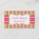 Bright stripes of lime, pink and orange decorate this fun business card. Customise the card to suit your needs, add or delete information etc...Use these business cards for a business, bakery, child care, daycare, preschool, salon, spa, fashion, stylist, hair stylist, daycare, preschool, florist, interior design, bed and breakfast, candy shop, ice cream shop, restaurant, gourmet chocolates, cheesecake, boutique, shop, coffee shop, etc...