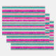 This striped striped gift wrap has pretty stripes in hot pink, pastel pink, teal green, mint and grey. This festive wrapping paper has a shimmery texture.