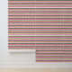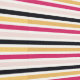 This fun wallpaper is perfect for any room. A white background with thin hot pink, yellow, and black stripes.