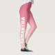 Just personalise the custom name on these ombre leggings to make them your own. The background fades from medium hot pink to light blush pink, and the name is in white varsity style lettering for a girly look with a sporty twist. Great for dance, yoga, sports or casual days.
