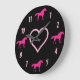 Hot Pink Unicorns and Pink Heart on Black Large Clock