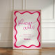 Hot Pink Wavy Border Colourful Modern Recipe Cards Pedestal Sign