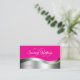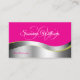 Hot Pink Wavy Silver Decor with Initials Photo Business Card