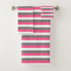 Hot Pink, White and Charcoal Grey Stripes Bath Towel Set