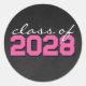 Hot Pink and White Chalkboard Graduation Circle Stickers - Dark Chalkboard