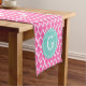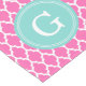 Hot Pink White Moroccan #4Sm Aqua Rnd Monogram Short Table Runner