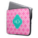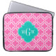Hot Pink White Moroccan #6 Teal 3 Initial Monogram Laptop Sleeve