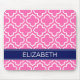 Hot PInk Wht Moroccan #6 Navy Blue Name Monogram Mouse Pad