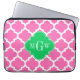 Hot Pink Wt Moroccan #5 Emerald 3 Initial Monogram Laptop Sleeve