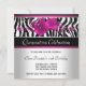 Beautiful fuchsia flowers and hot pink zebra Quinceanera invitation template. This elegant hot pink zebra birthday party invitation is easily customised for your event by simply choosing the "Customise it!" button to begin adding your event details, font style, font size & colour, and wording. Please note - all of the stickers, cards and invitation designs you will find on Zazzle are printed graphics with no actual jewels, bows, raised, embossed, or added parts or pieces.
