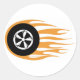 Hot rod wheel with flames classic round sticker