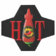 HOT letters with the O made with a chilli pepper sauce bottle.