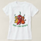 Tshirt depicting Hot Spicy Chilli Peppers coloured red, yelow and orange.