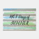 Hot Days of Summer is written in black script. Fun beach vibe with driftwood grey, green, blue watercolor stripes on white background. Original Design © TamiraZDesigns.