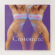 Female model wearing a cut-off tee saying Hot Tub Club, tiny thong and high heels to customise, personalise by changing to your name