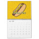Cartoon illustration of hotdog. Junk food outline icons yellow pattern background. Custom text.