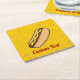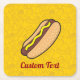 Cartoon illustration of hotdog. Junk food outline icons yellow pattern background. Custom text.