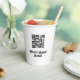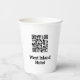 Hotel Cafe Paper Cup "with QR Code. Show off your own QR Code Design. Let others scan your QR Code With their mobile phones! Replace image with your own uploaded QR Code. Includes name of the establishment. Black and white. There are various websites that allow you to create and download QR Codes free. QR Codes can be created for websites, emails, Wifi, Vcards, and many other uses. One example is https://www.qr-code-generator.com
