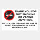 Hotel room no smoking sign. Thank you for not smoking. Up to a $$$ fee will be added for smoking in a non smoking room. Custom fine.