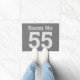 Hotel room number in clear bold lettering on a doormat. Grey colours.