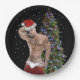 Hottest Hunk Buff Santa Christmas Party Paper Plate