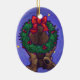 Cute Hound Dog Christmas ornament features our fun artwork digitally painted by Traci Van Wagoner of a fun brown dog from the front decked out in a santa hat and the back wearing a Christmas wreath on his behind. Our fun and humourous doggy character all dressed up for the holidays makes a unique gift for those Christmas lovers, puppy lovers, dog lovers, and animal lovers on your gift list this holiday season. Bring a smile to your friend's and family's faces and have a merry holiday season!