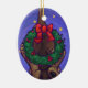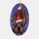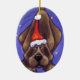 Cute Hound Dog Christmas ornament features our fun artwork digitally painted by Traci Van Wagoner of a fun brown dog from the front decked out in a santa hat and the back wearing a Christmas wreath on his behind. Our fun and humourous doggy character all dressed up for the holidays makes a unique gift for those Christmas lovers, puppy lovers, dog lovers, and animal lovers on your gift list this holiday season. Bring a smile to your friend's and family's faces and have a merry holiday season!