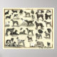 A constructed vintage poster of various dog breeds including terriers, sheepdogs, bulldogs, poodles, mastiffs, pointers, retrievers, setters, various hounds and many others.