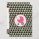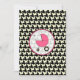 A baby shower invitation featuring a black and white houndstooth background with pink trim. Pink text at top reads "It's a Girl." Personalise the black text with details of your occasion. Opposite side features solid houndstooth print with hot pink baby carriage inside a matching circle shaped frame.