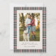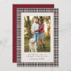 A traditional black and red houndstooth pattern frames a single vertical photo on this classic holiday card. The simple type allows room for a custom greeting ("Merry Christmas" can be changed to "Happy Holidays" or anything you'd like), family name and year. The back features a coordinating maroon red with two more photos and room for a custom message. Back photos and text can be left blank. This family holiday card is the perfect way to send cheer to friends and family.