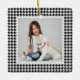 A classic and festive black and white houndstooth pattern frames a single square photo in this simple personalised Christmas ornament design. A great way to commemorate a favourite family photo or event for the year, this ornament makes a perfect gift for parents, grandparents and more. The back features a matching houndstooth pattern with room for custom text and a year.