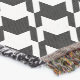 A quality printed throw has its advantages. This is a much finer weave throw than its loopier cousins, and though lighter, it is worth the investment for custom room accessorizing. The back is much prettier than the typical brown, and the fringe on the long sides very vivid, the selvage nicely done. Before photographing, I washed the throw in cold water, delicate, with a thicker woven throw the same size. On tumble dry low, this throw was dry in half the time as the other. This is a very practical quality if you use throws for furniture covers or to wrap up in frequently. The sleekness of the fabric makes it a great layer for accenting or protecting without the feeling of sitting on too much stuff. Perfect for napping or when you feel a light chill coming on. The color printing is beautiful and on this fabric, matched the design and color of my Photoshop image. This is an advantage for blending room fabrics and colors. The fringe on the short sides prints the colors from the design image and therefore varies from the side fringe. I streaked a white fractal line through the plaid pattern to give the illusion of weaving. This printed as crisp as an illusory thread, and put some white in the short side fringe, showing another advantage of print vs loomed- for artistic purposes, line lines, detail, and color integrity can be planned and preserved. My loomed throws have color limitations and more of a needlepoint texture. Print throws reproduce an exact image. The throw felt a little stiff straight out of the package, but this went away in the first delicate wash. Of course I searched the wash water for ink or bleeding and there was none.