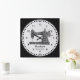Perfect gift for anyone who loves to sew or quilt. Personalise this vintage looking wall clock printed with a vintage style sewing machine image in a houndstooth check pattern. Neutral black and white colours allow it to be a nice accent in any room.Your choice of round or square.