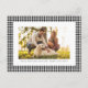 A traditional black and white houndstooth pattern frames a single horizontal photo on this classic holiday postcard. The simple type allows room for a custom greeting ("Merry Christmas" can be changed to "Happy Holidays" or anything you'd like), family names and year. The back features a second photo and room for a custom message.