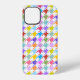 Houndstooth style surface pattern design in a bright mix of colours on a white background.