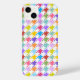 Houndstooth style surface pattern design in a bright mix of colours on a white background.