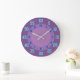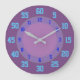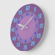A stylish clock with purple tints, that nicely shows you the hours and the minutes.