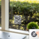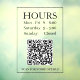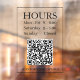 Hours Open Sign: Generate QR code for store entry door or window in black text on transparent background with QR code message.