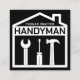 Retro simplistic but professional cover consisting of wrench, screwdriver and hammer in frame in shape of house. Ideal for handyman services, construction company, home repair and remodeling and more. Background colour is adjustable. Use existing logo or change it with personal one.