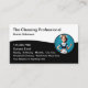 Modern simple house cleaning maid service business cards design created with a cleaning character emblem you can use on our cards and editable custom layout for a house maid, housekeeper, or home cleaning service.