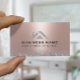 Rose Gold & Silver Glitter House Logo Real Estate Modern Cleaning Business Cards.