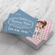 Cartoon Maid Blue & Pink House Cleaning Service Business Card.