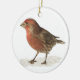This holiday ornament features a male house finch standing in the snow. He has lovely has red plumage on his head and breast. Snow clings to his beak. Won't he look lovely hanging from your Christmas tree?