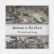 Create a beautiful magnet for the refrigerator of your house rental or create a keepsake for your guest with this nature-themed magnet. The background features an abstract marbled pattern of black and grey created by years of wind and saltwater washing over this piece of driftwood. The nature photo captures the unique swirls of the woodgrain are adorned with a light dusting of sand and is complemented by a large light grey banner for your message of welcome and your home's name. Quickly and easily personalise to create a memorable vacation experience for your guests.