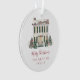 House Holiday Ornament with photo on the back. Celebrate your new home in a memorable way with this beautifully crafted Christmas ornament. Featuring a watercolor illustration of a traditional colonial house surrounded by snow-covered Christmas trees and a jolly snowman, this ornament makes a wonderful keepsake to commemorate your move during the holiday season. Personalise it with your family’s details and bring a touch of holiday cheer and nostalgia to your tree. Make this special moment last for years to come—add a bit of holiday magic to your décor!