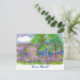 A moving announcement post card decorated with a quiet cottage with trees in a field of lavender flowers in full bloom drawn with coloured pencil and watercolor. Nice for letting family, friends, and customers know your new address.