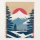 A lovely design for winter lovers who do not mind some warmth; minimalist landscape illustration with sunrise.