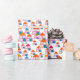 A GIFT WRAP IDEAL FOR A HOUSE WARMING EVENT. FOR GIFTING SOMEONE WHO IS MOVING INTO A NEW HOME. THE PAPER HAS HOUSES SCATTERED AROUND IN ORANGE AND BLUE.