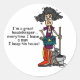 Housekeeper Humour T-shirts, sweatshirts, mugs, cards, stickers, magnets, keychains, pillows, mousepads, iPhone cases, luggage tags, placemats, and other attitude apparel and gifts featuring Stella dressed as a housekeeper and saying she's a great housekeeper, every time she leaves a man she keeps his house!