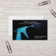 A stylish and modern business card design suitable for a cleaner or housekeeping business. This card could be used for a freelance cleaner or for a small cleaning company. This design is of a modern photography picture of a cleaning spray in blue against a dark background. This business card is fully customisable to include your own personal details.